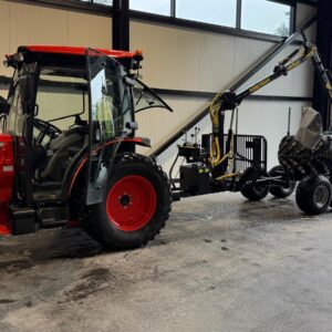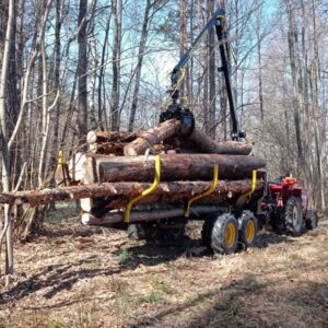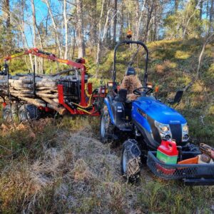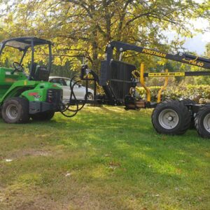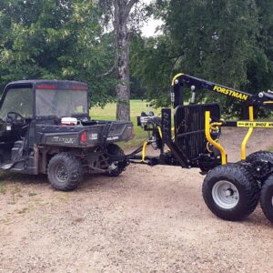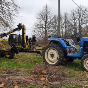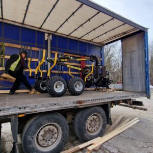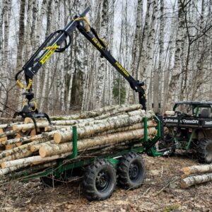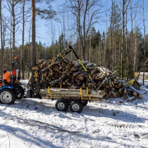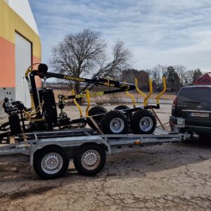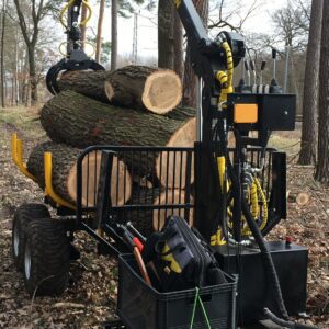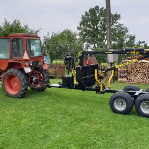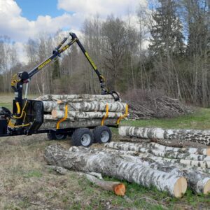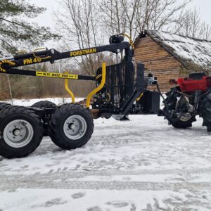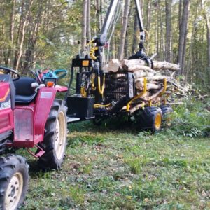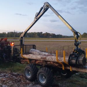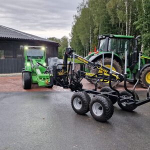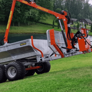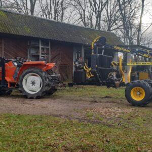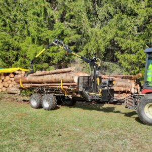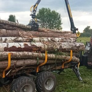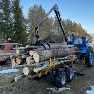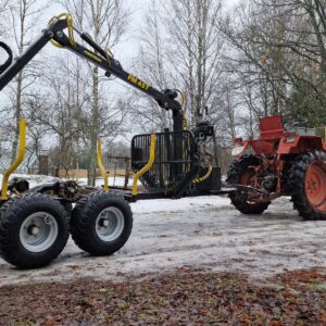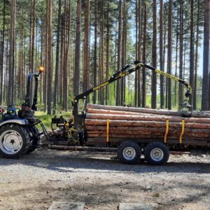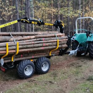 Forest trailers with a load capacity of up to 3.7 tons and forest cranes with a reach of 3.5 to 5.1 meters are designed for small compact tractors with 16–40 hp. Optional equipment includes hydraulic winches, 4-wheel drive systems, hydraulic stations, pumps, and more. We hope you find the perfect solution here.