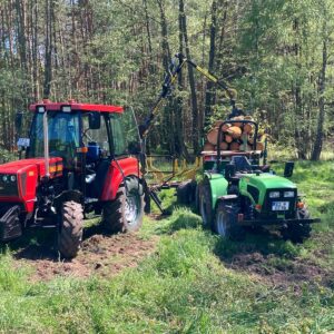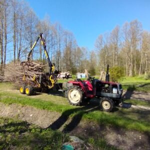 While more power is always better, the main principle for a lightweight trailer is to protect the forest ground. If the trailer is lightweight, the tractor should be as well. In our experience, the ideal tractor for our trailer has 25–35 hp, although it is also possible to operate with a 16 or 20 hp tractor.