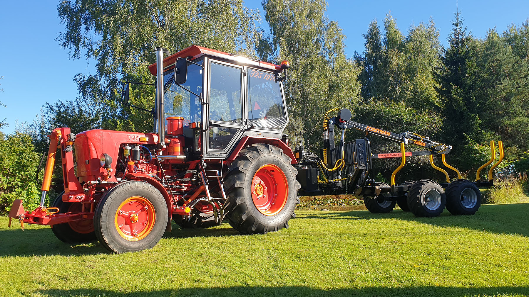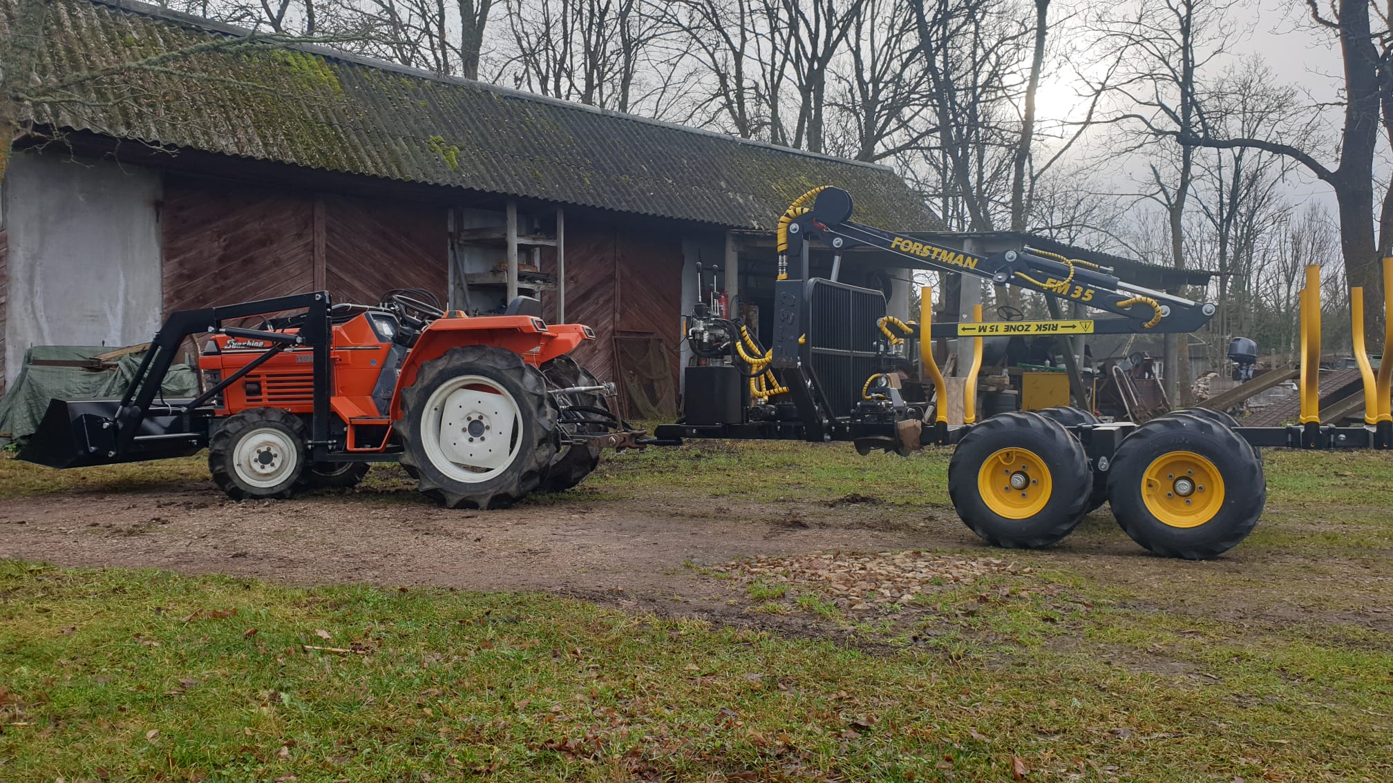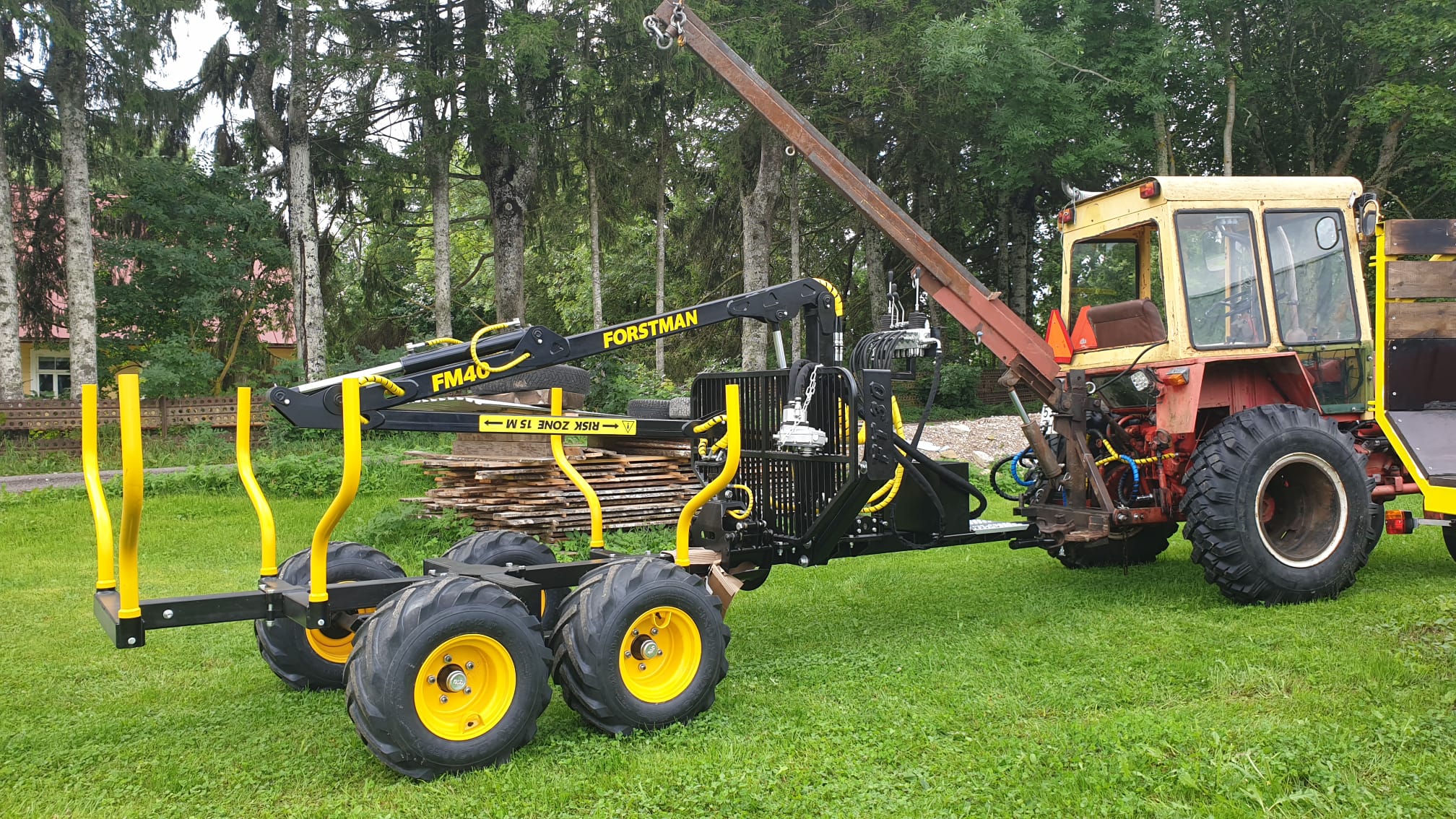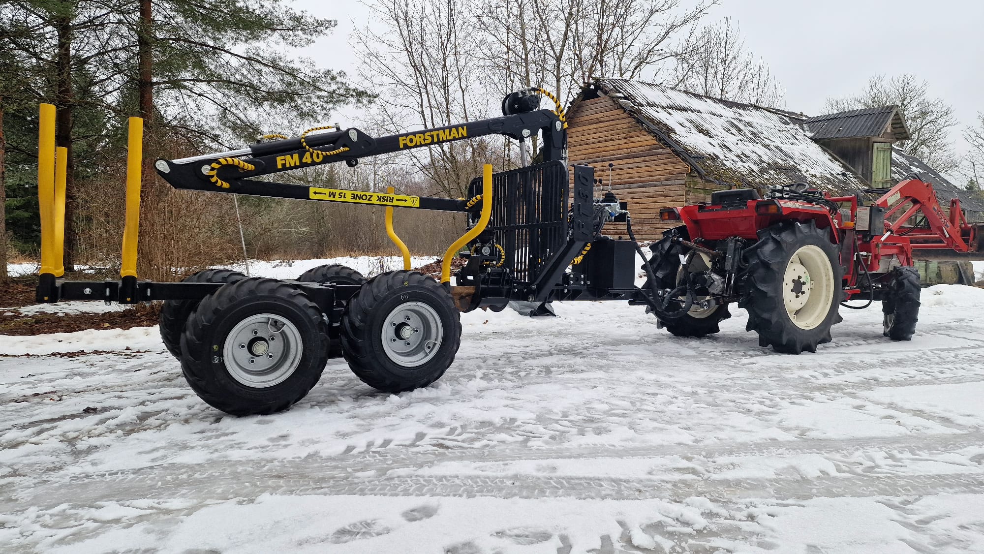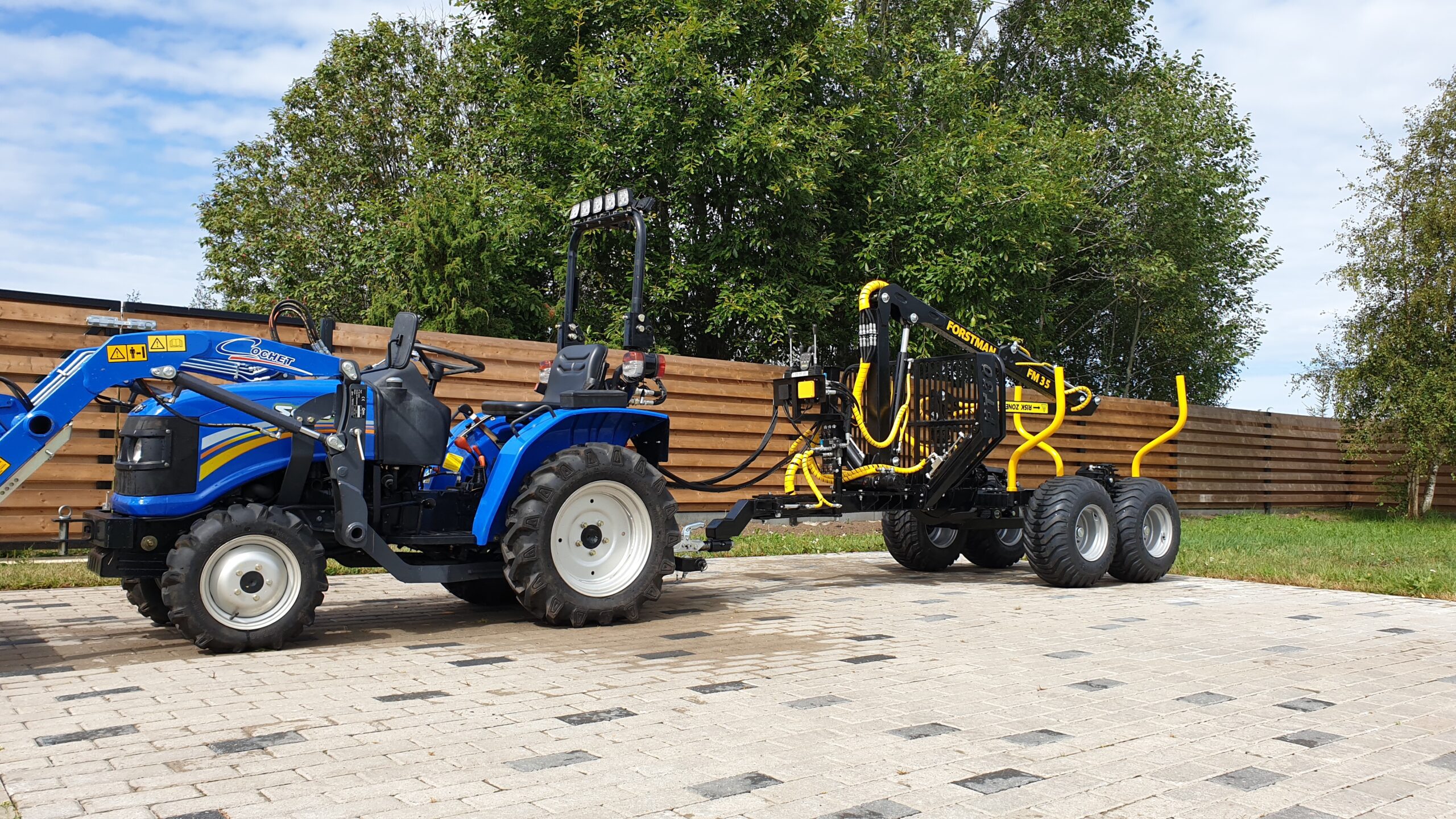 Forest trailers with a load capacity of up to 3.7 tons and forest cranes with a reach of 3.5 to 5.1 meters are designed for small compact tractors with 16–40 hp. Optional equipment includes hydraulic winches, 4-wheel drive systems, hydraulic stations, pumps, and more. We hope you find the perfect solution here.