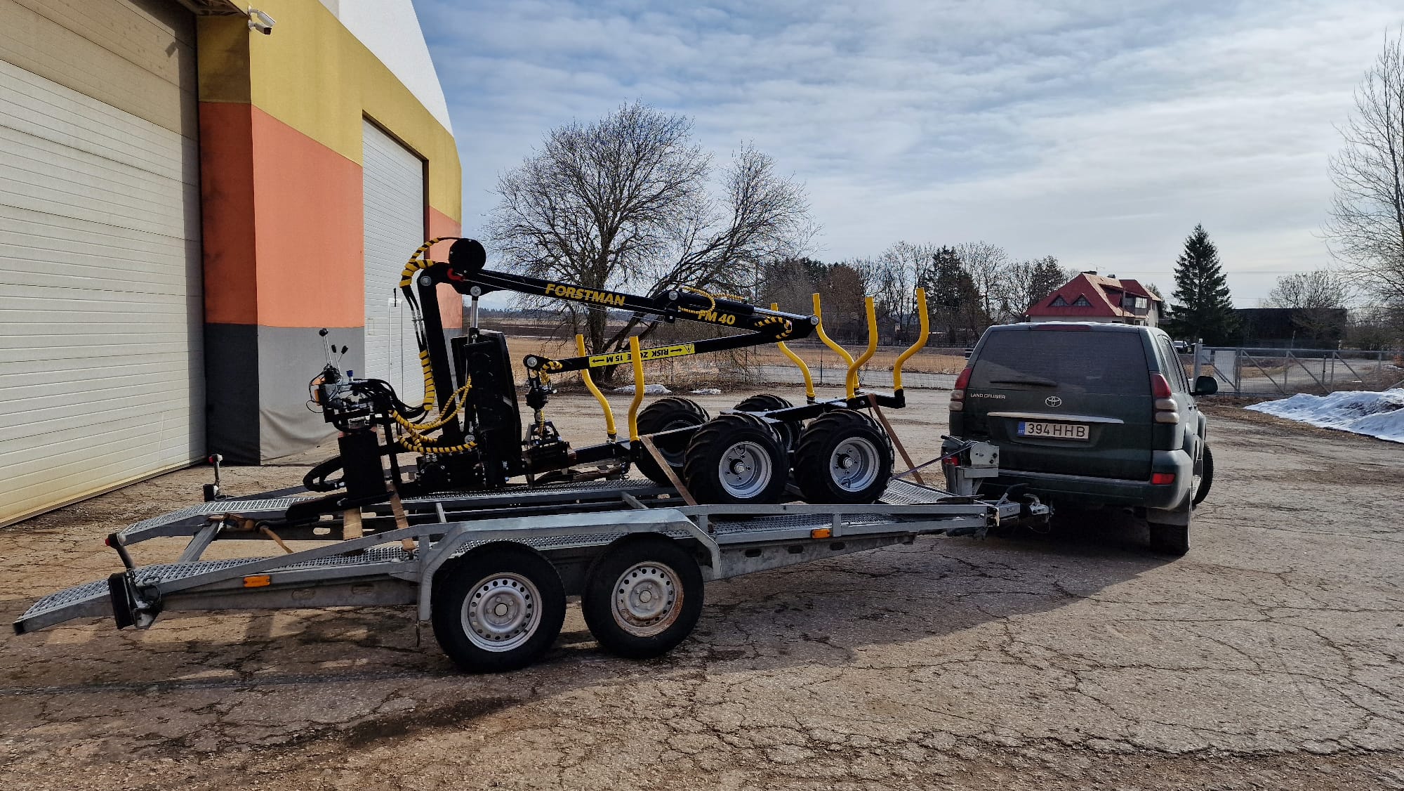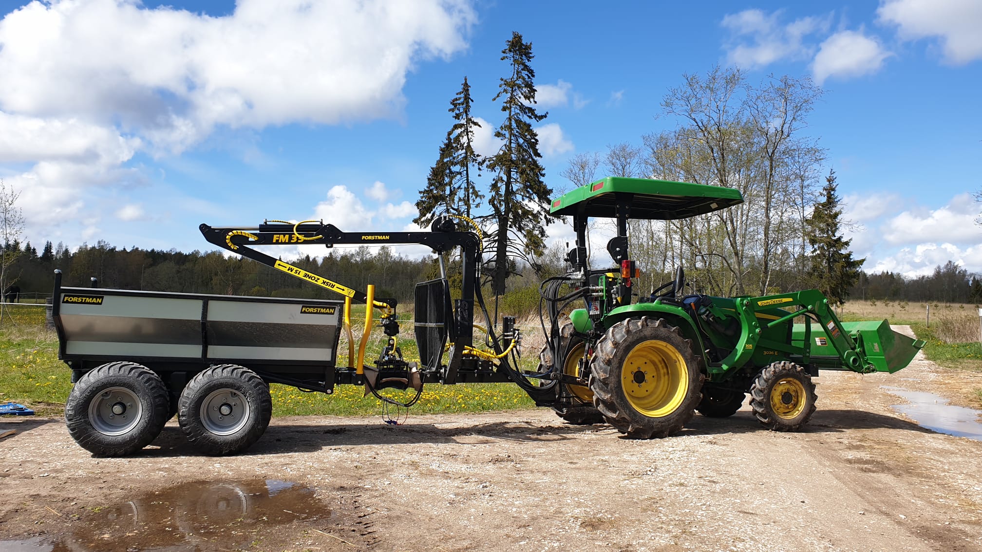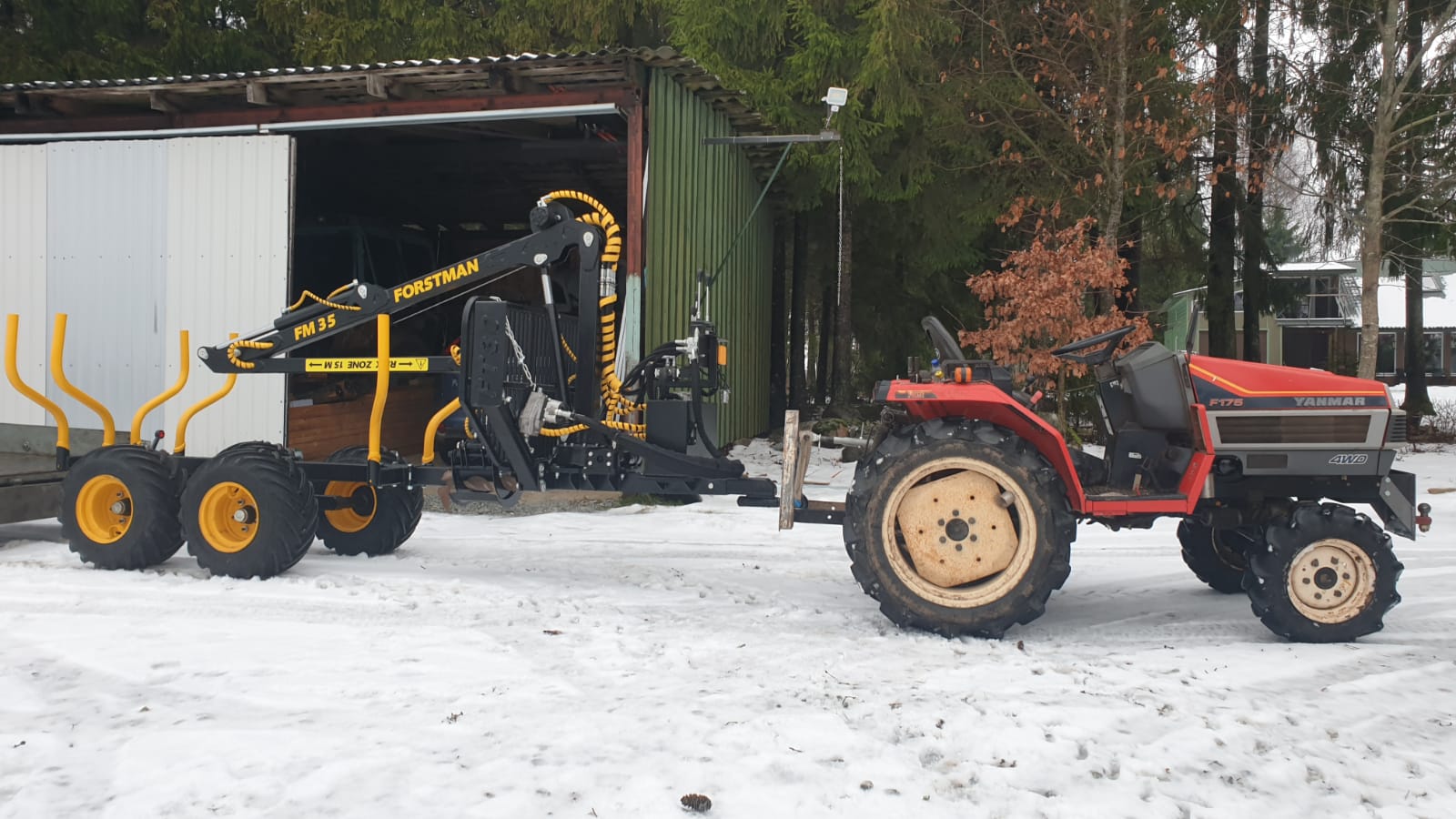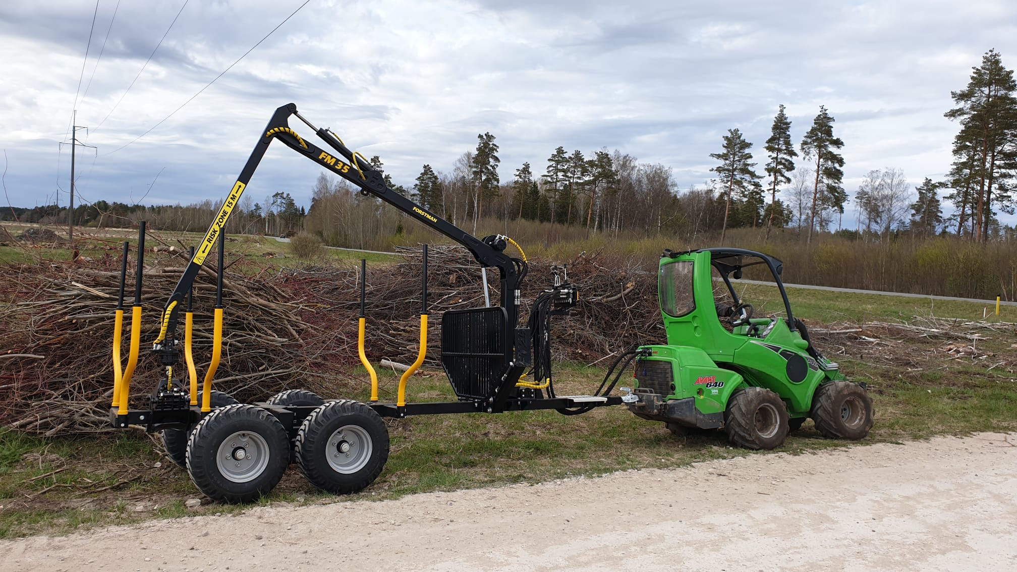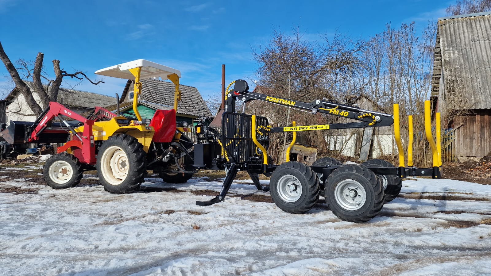 Forest trailers with a load capacity of up to 3.7 tons and forest cranes with a reach of 3.5 to 5.1 meters are designed for small compact tractors with 16–40 hp. Optional equipment includes hydraulic winches, 4-wheel drive systems, hydraulic stations, pumps, and more. We hope you find the perfect solution here.