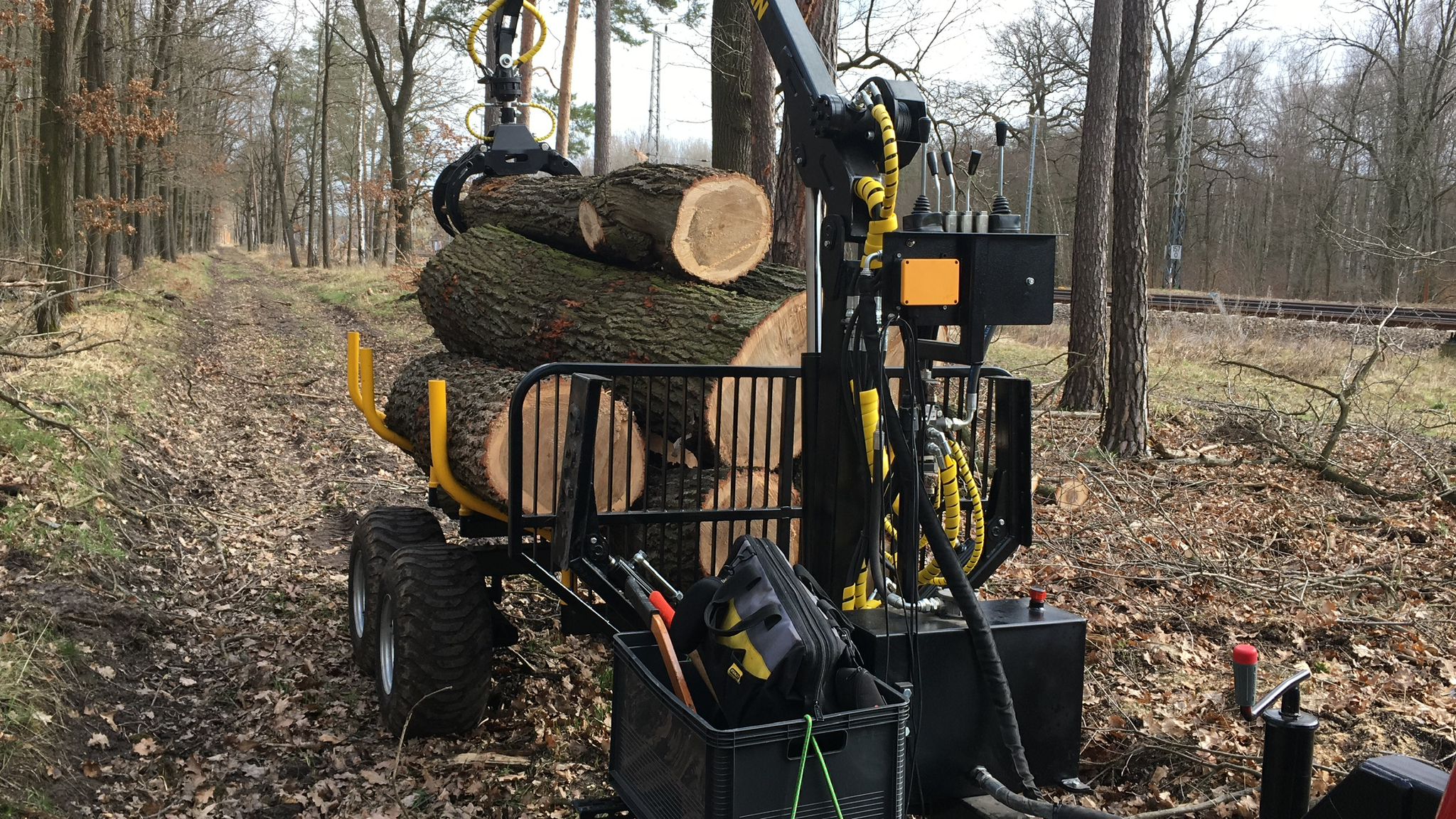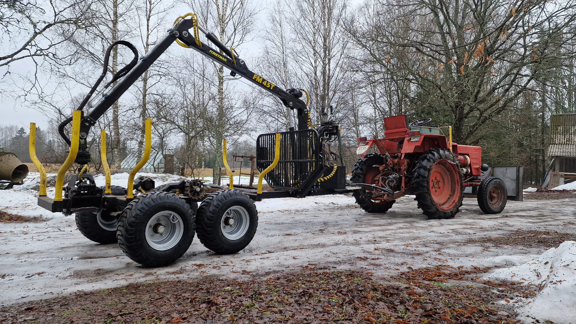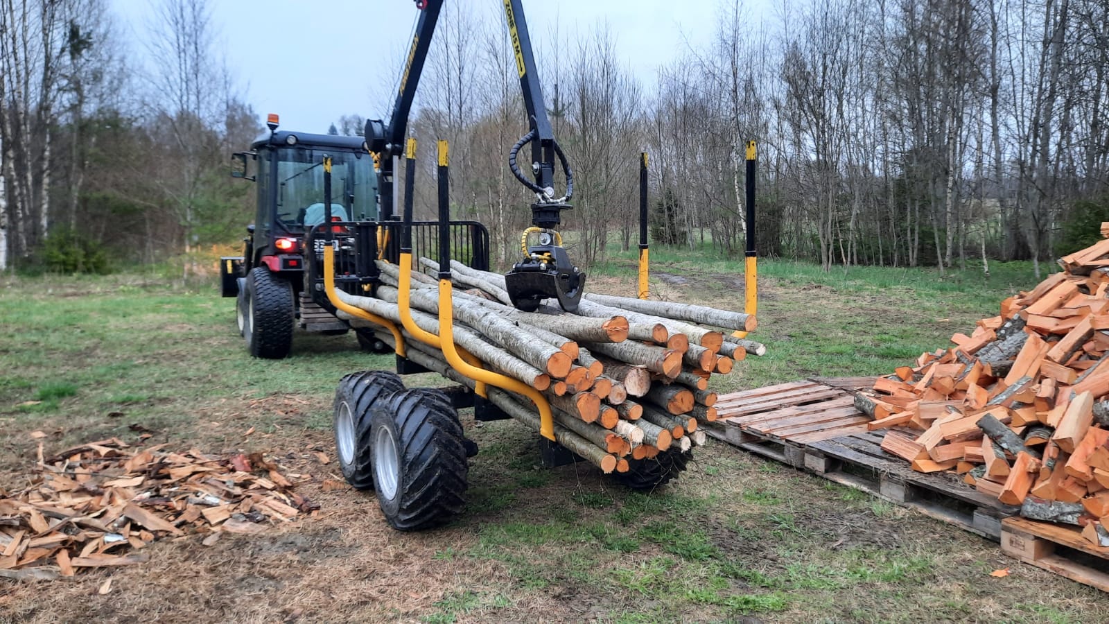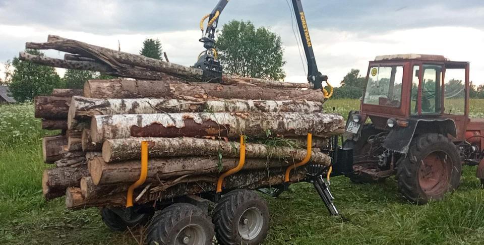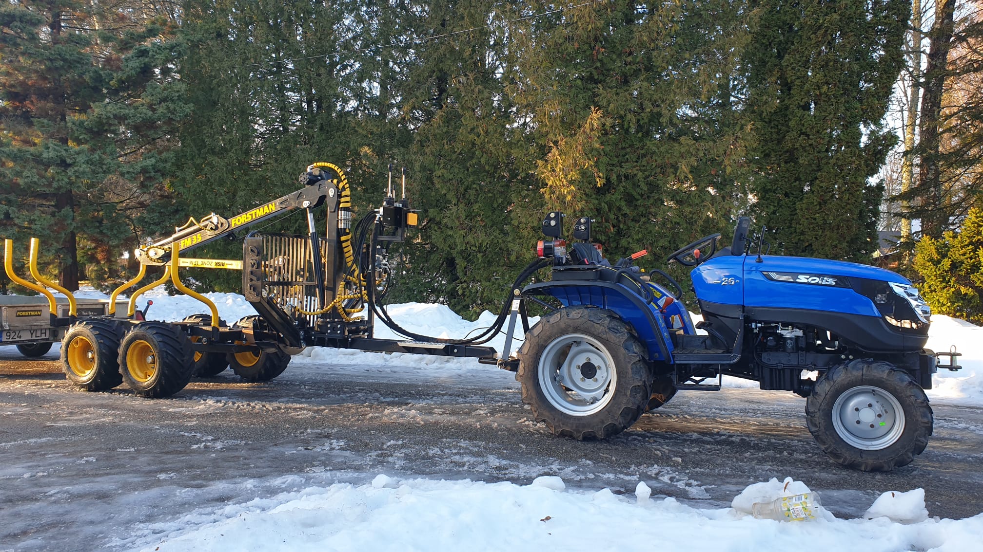 Forest trailers with a load capacity of up to 3.7 tons and forest cranes with a reach of 3.5 to 5.1 meters are designed for small compact tractors with 16–40 hp. Optional equipment includes hydraulic winches, 4-wheel drive systems, hydraulic stations, pumps, and more. We hope you find the perfect solution here.