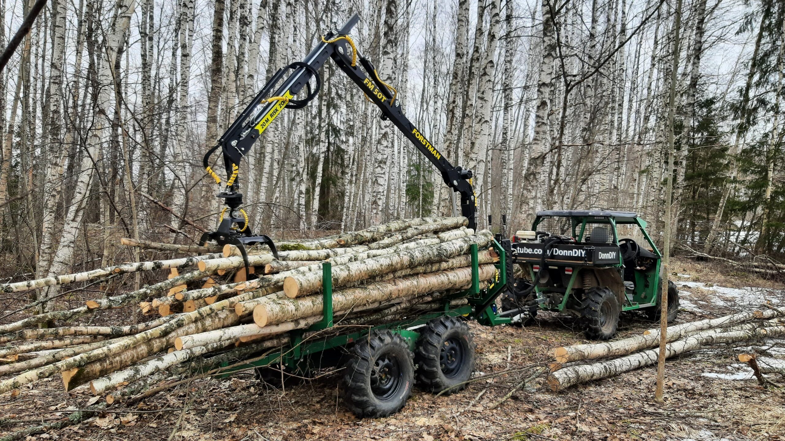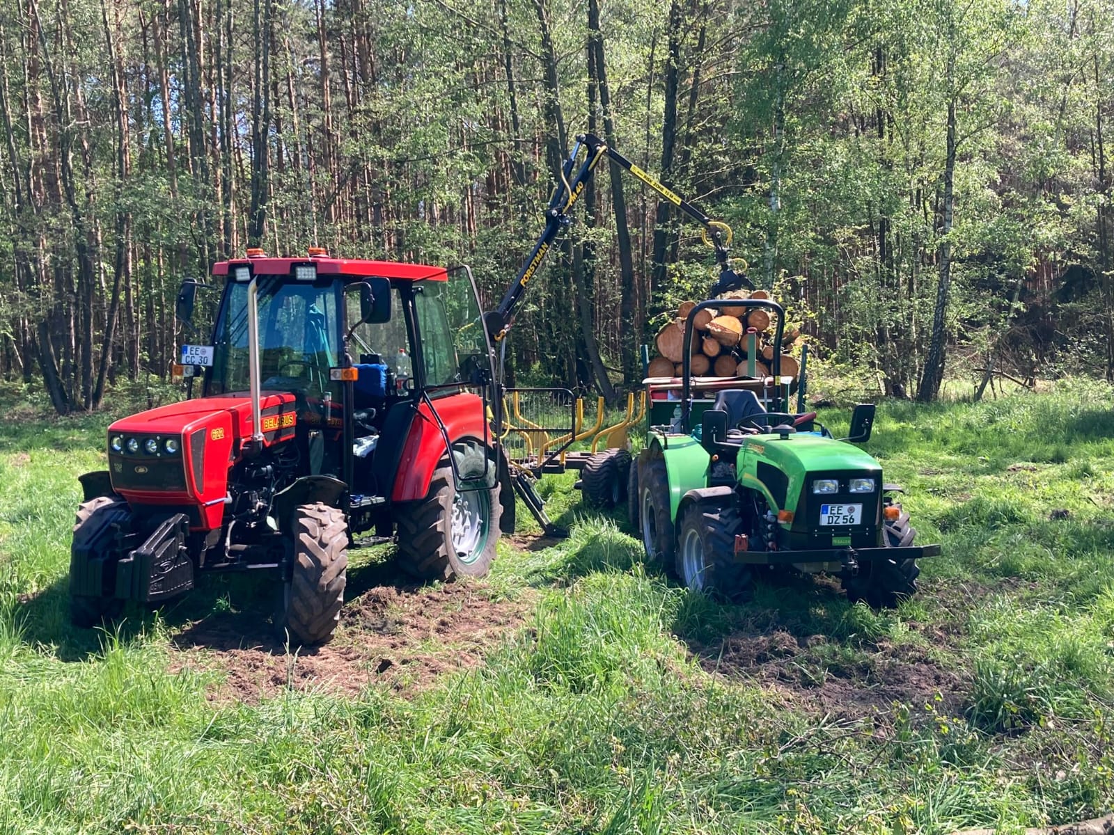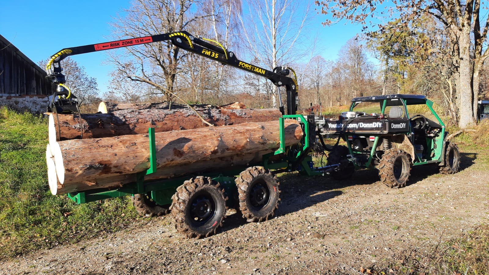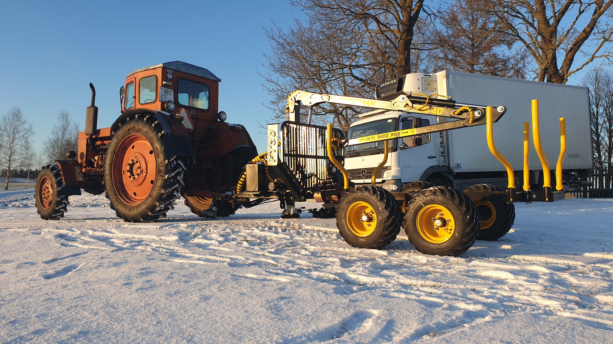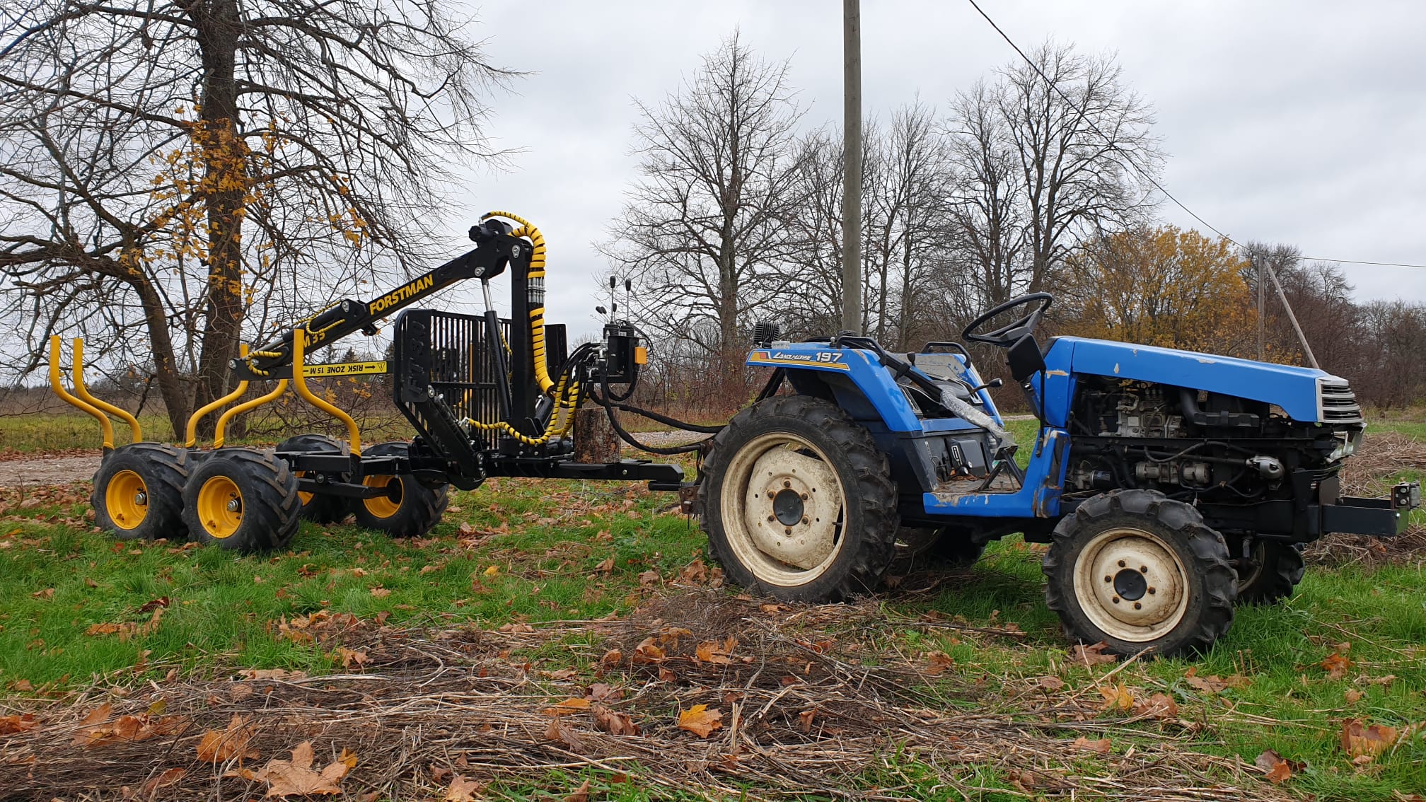 Forest trailers with a load capacity of up to 3.7 tons and forest cranes with a reach of 3.5 to 5.1 meters are designed for small compact tractors with 16–40 hp. Optional equipment includes hydraulic winches, 4-wheel drive systems, hydraulic stations, pumps, and more. We hope you find the perfect solution here.