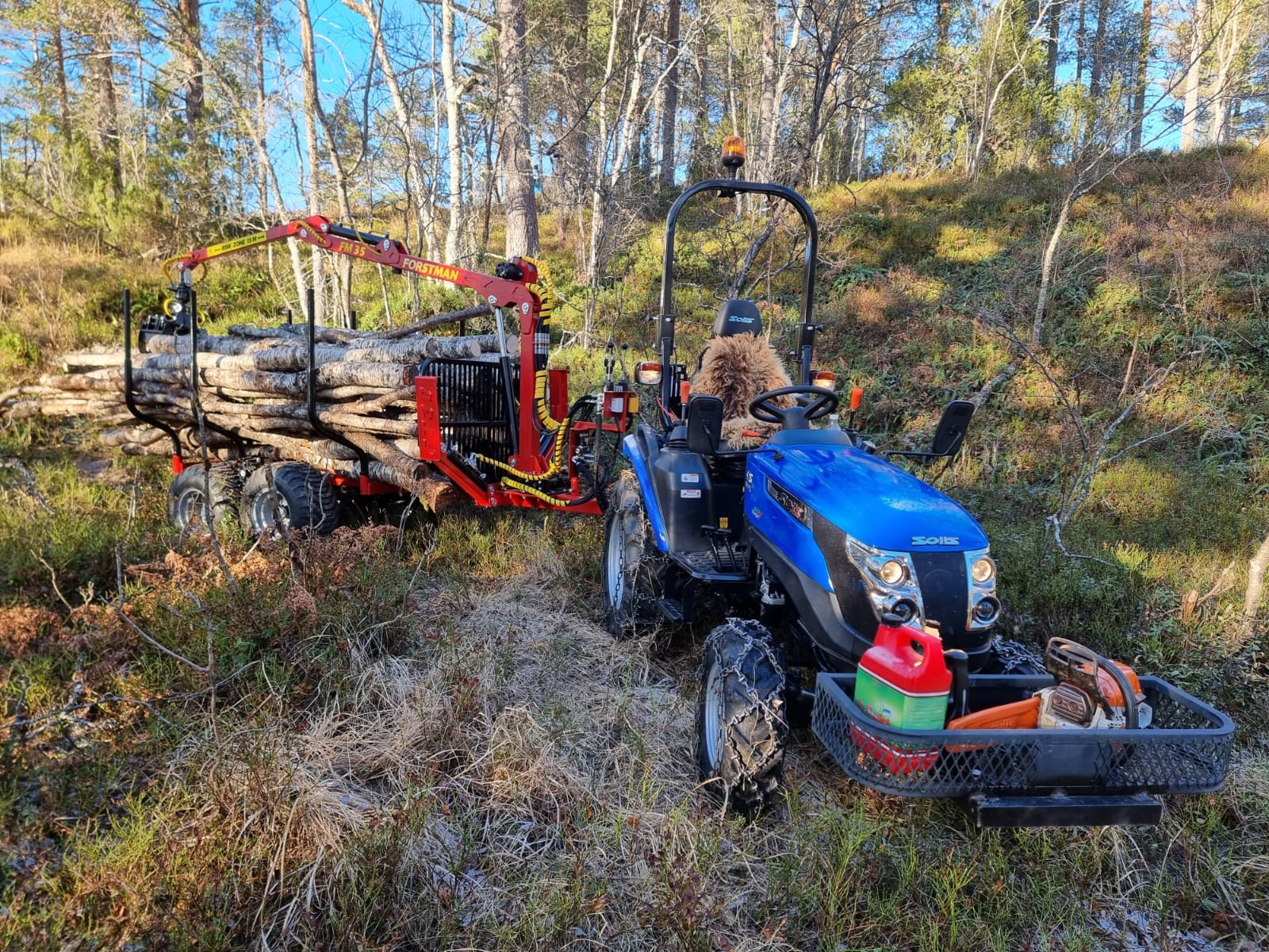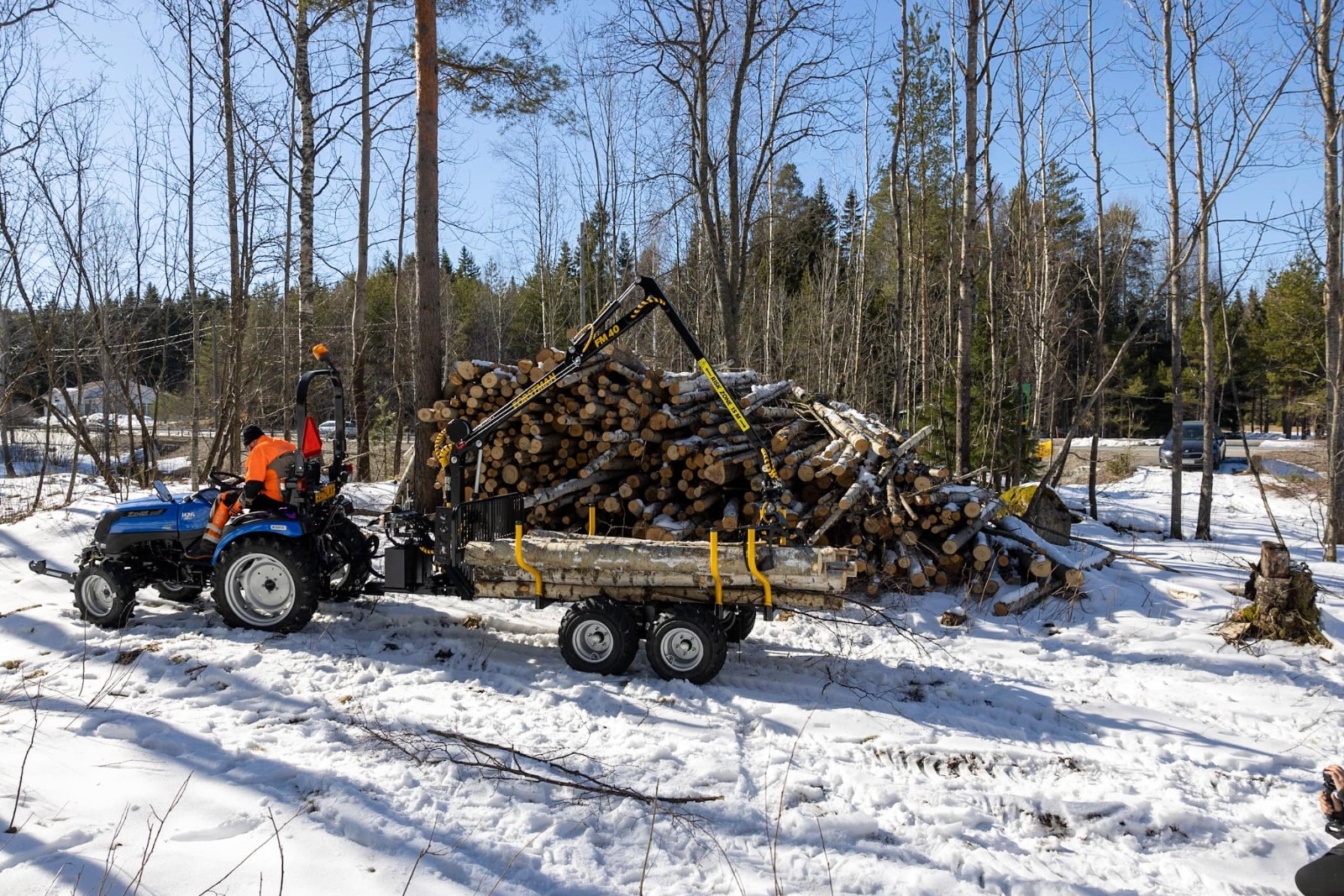While more power is always better, the main principle for a lightweight trailer is to protect the forest ground. If the trailer is lightweight, the tractor should be as well. In our experience, the ideal tractor for our trailer has 25–35 hp, although it is also possible to operate with a 16 or 20 hp tractor.